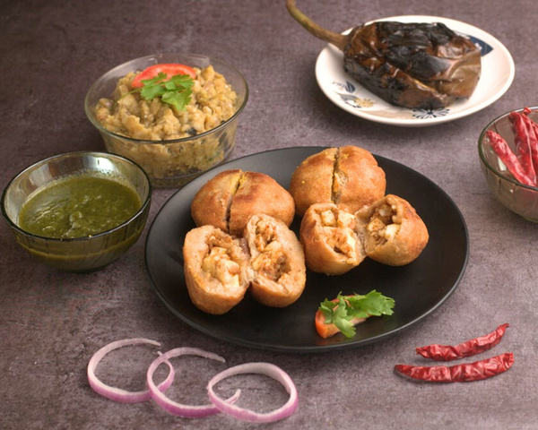 PREPARATION WITH FRESHLY GROUNDED CHANA SATTU AND FLAVOURED WITH MAGICAL SPICES. IT WILL GIVE YOU DEVINE TASTE AND FLAVOUR WITH PREPATION LIKE FRIED, BAKED AND STEAMED. SERVED WITH CHOKHA AND GREEN CHUTNEY